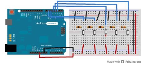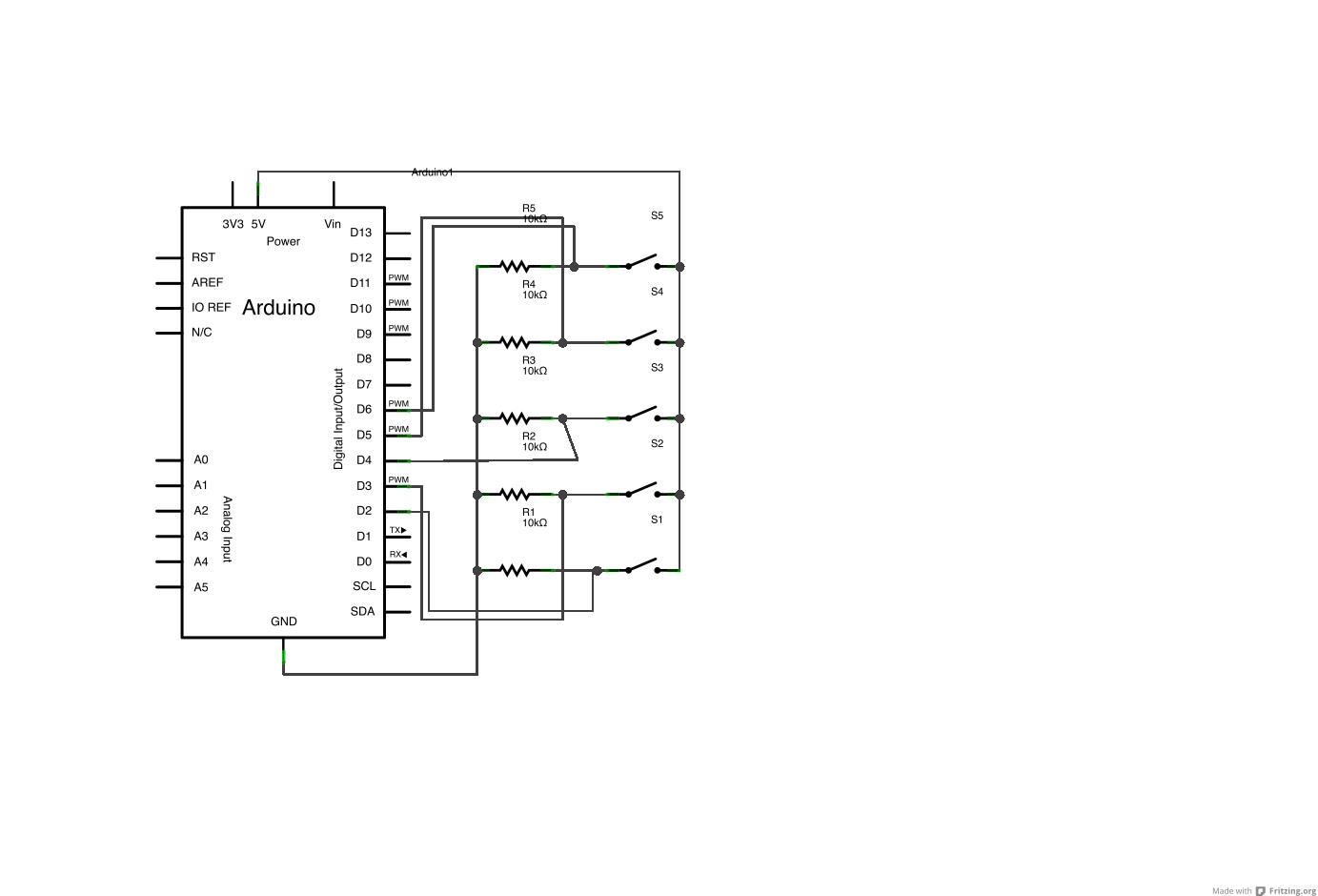 * 5 pushbuttons attached to D2, D3, D4, D5, D6